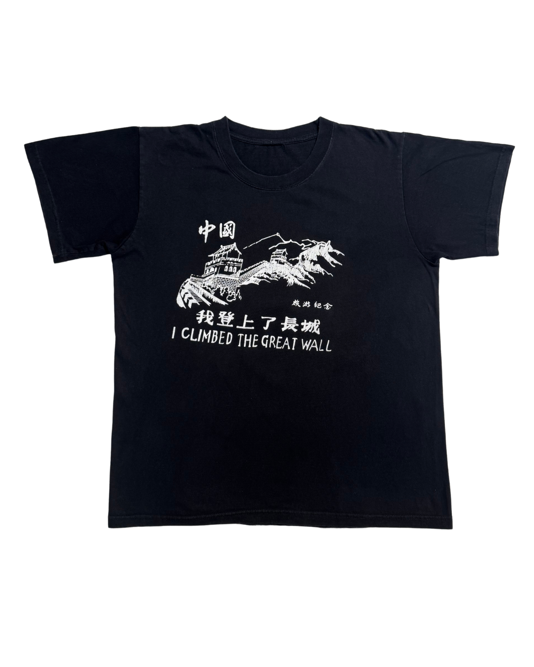 90s I Climbed the Great Wall Black 我登上了長城 TeeSize LShoulder 49cmChest 59cmSleeve 20cmLength 66cm